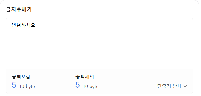 예를 들어, “안녕하세요”라는 문장은 10바이트(한글 5글자 × 2바이트)로 계산됩니다.