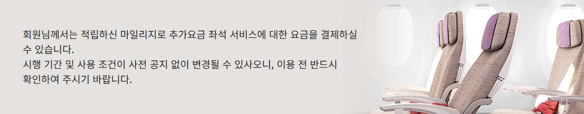 - 기존 적립된 마일리지로만 결제 가능 (탑승으로 적립 예정인 마일리지 사용 불가)