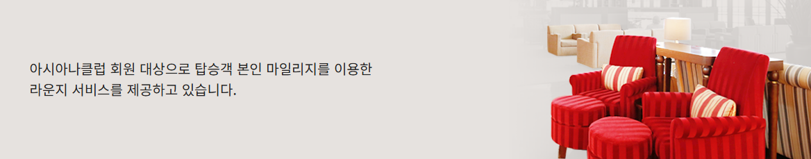 * 무료 이용 대상: 아시아나클럽 다이아몬드 등급 이상 회원과 동반 1인