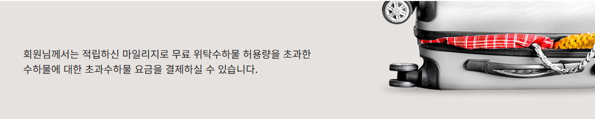 마일리지를 활용하여 추가 수하물 요금을 결제할 수 있습니다.