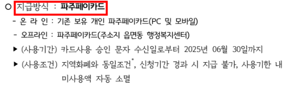 - 지역 경제 활성화: 파주 지역 상점에서 사용 가능, 지역 상권 지원.